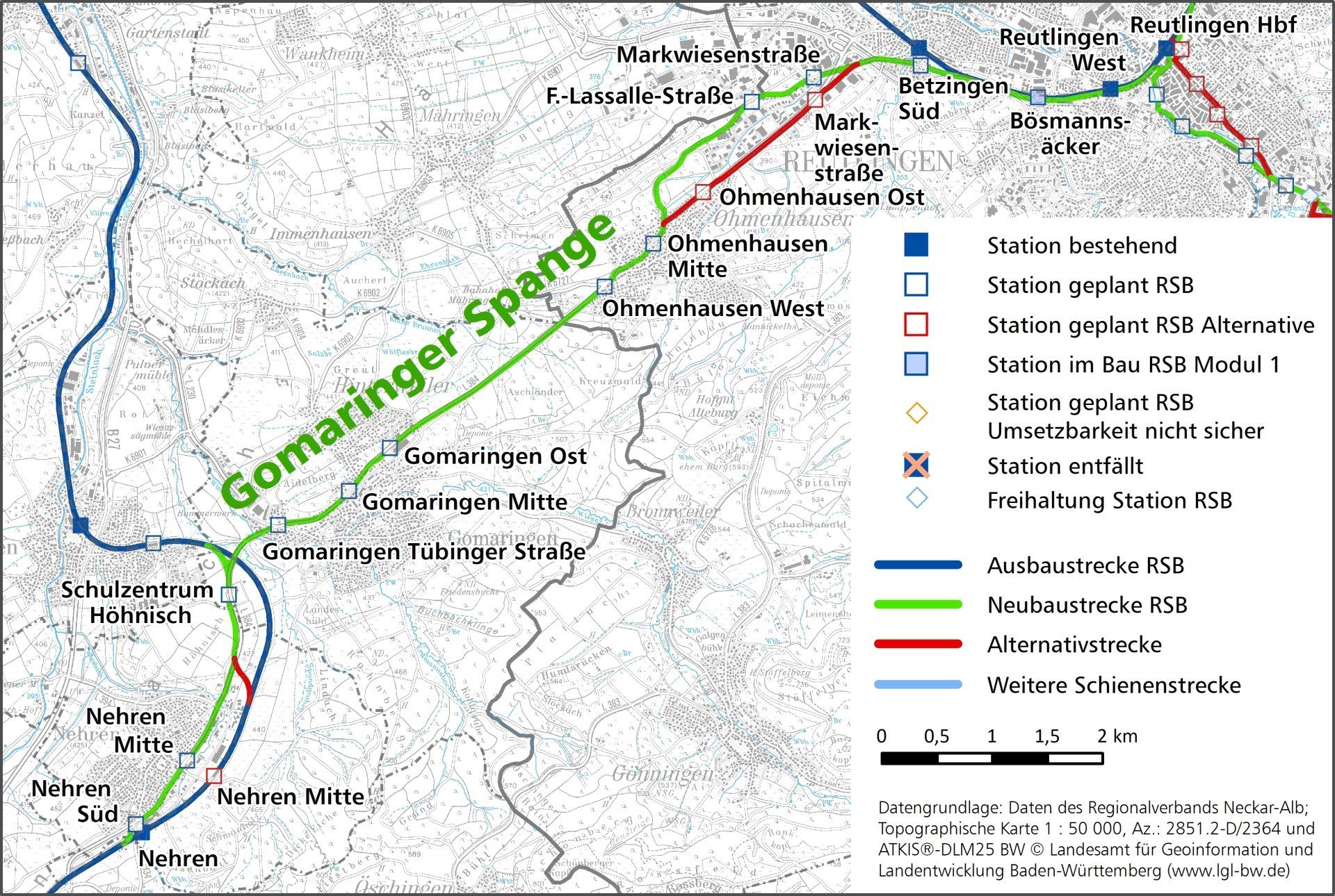 Auf der Gomaringer Spange wurden im Teil des Landkreises Reutlingen verschiedene Varianten geprüft und in Planungsunterlagen dargestellt.