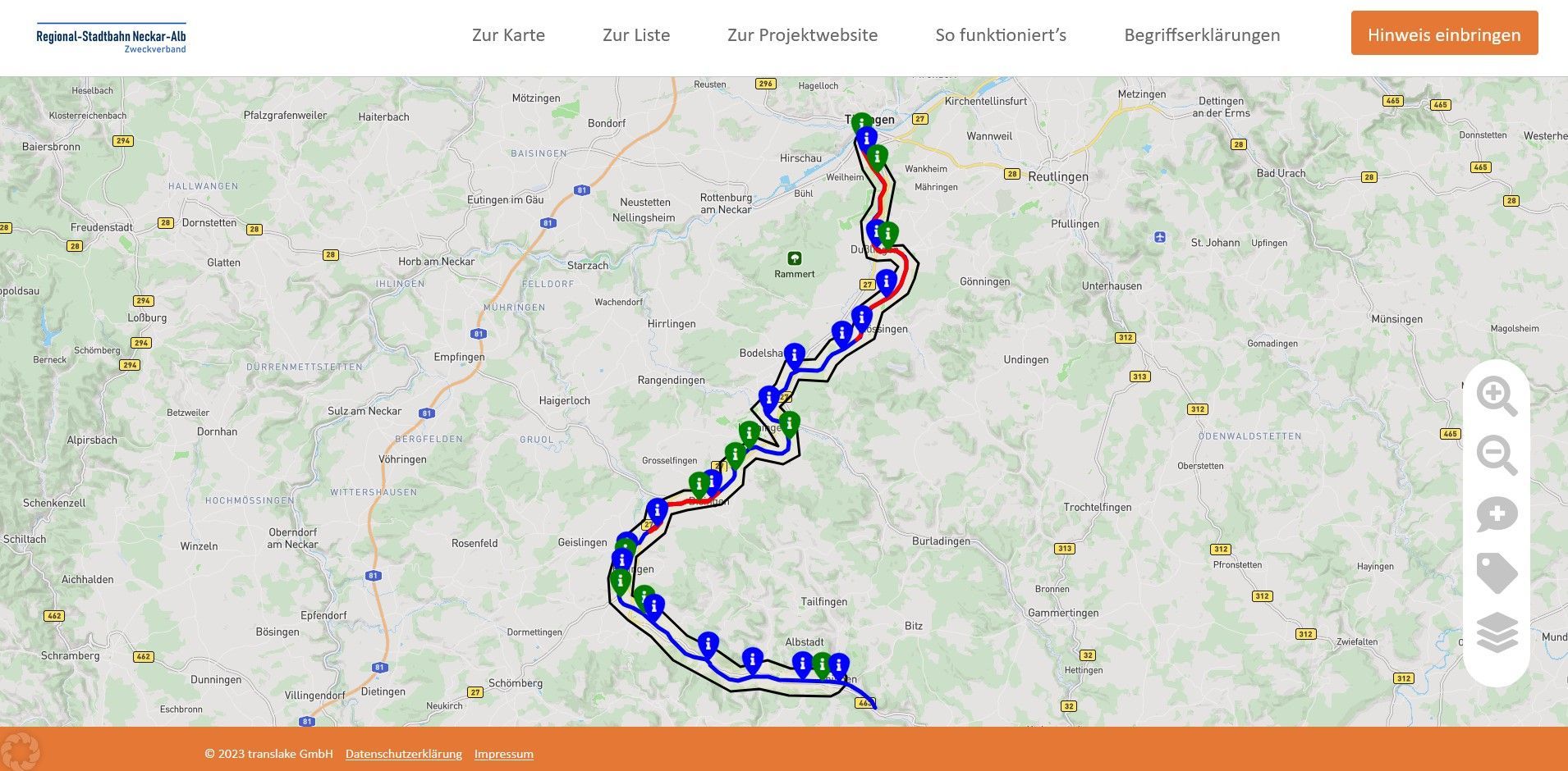 Über die digitale Beteiligungskarte mitmap haben Sie die Möglichkeit, unseren Planerinnen und Planern Hinweise und Anregungen zu den aktuellen Planungen zu geben. So können wir mitnehmen, was Ihnen auf der Zollern-Alb-Bahn wichtig ist. Wir freuen uns auf den Austausch und sind gespannt auf Ihre Anregungen!